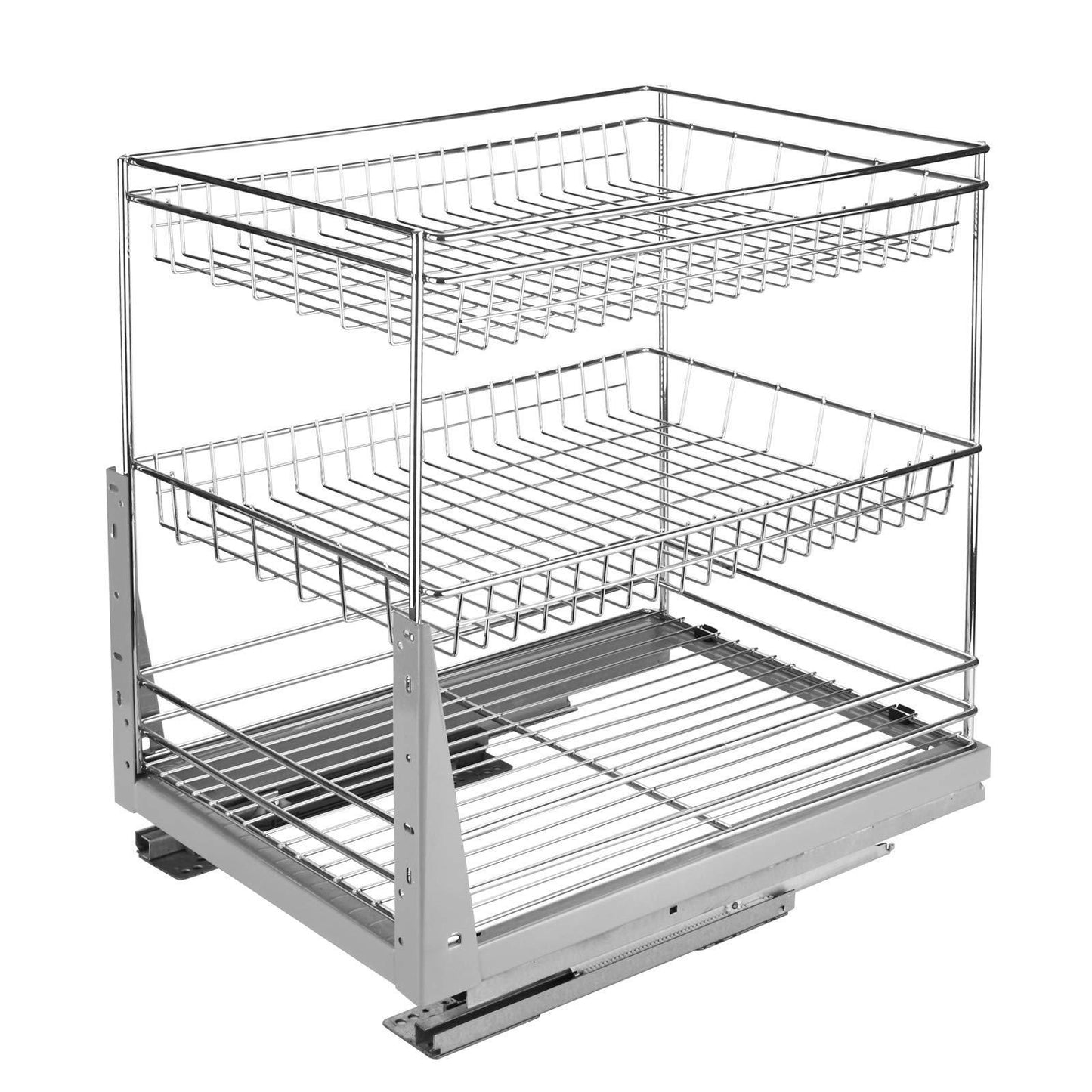 17.6 In. Length Cabinet Pull-Out Chrome Wire Basket Organizer 3-Tier Cabinet Spice Rack Shelves Bowl Pan Pots Holder Full Pullout Set