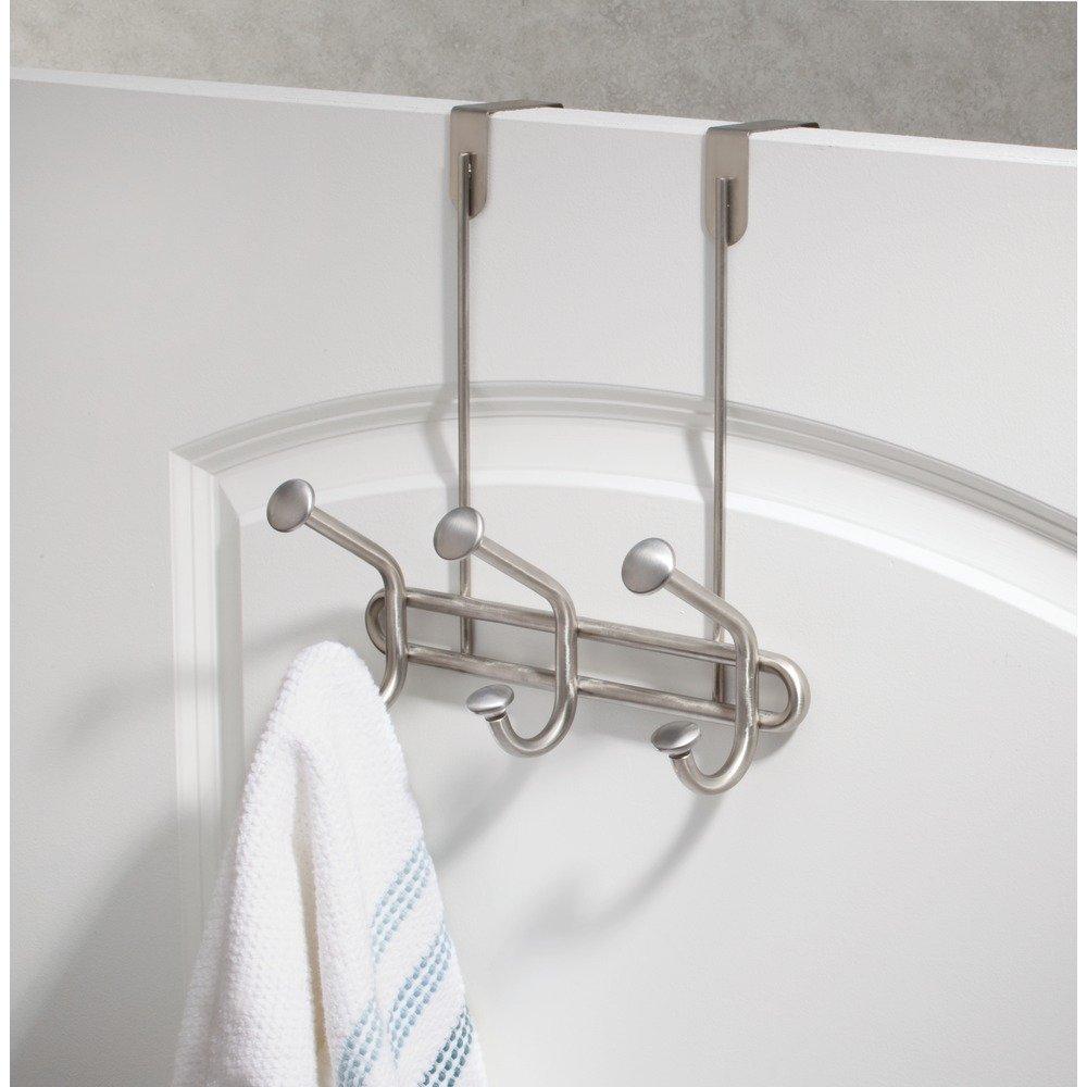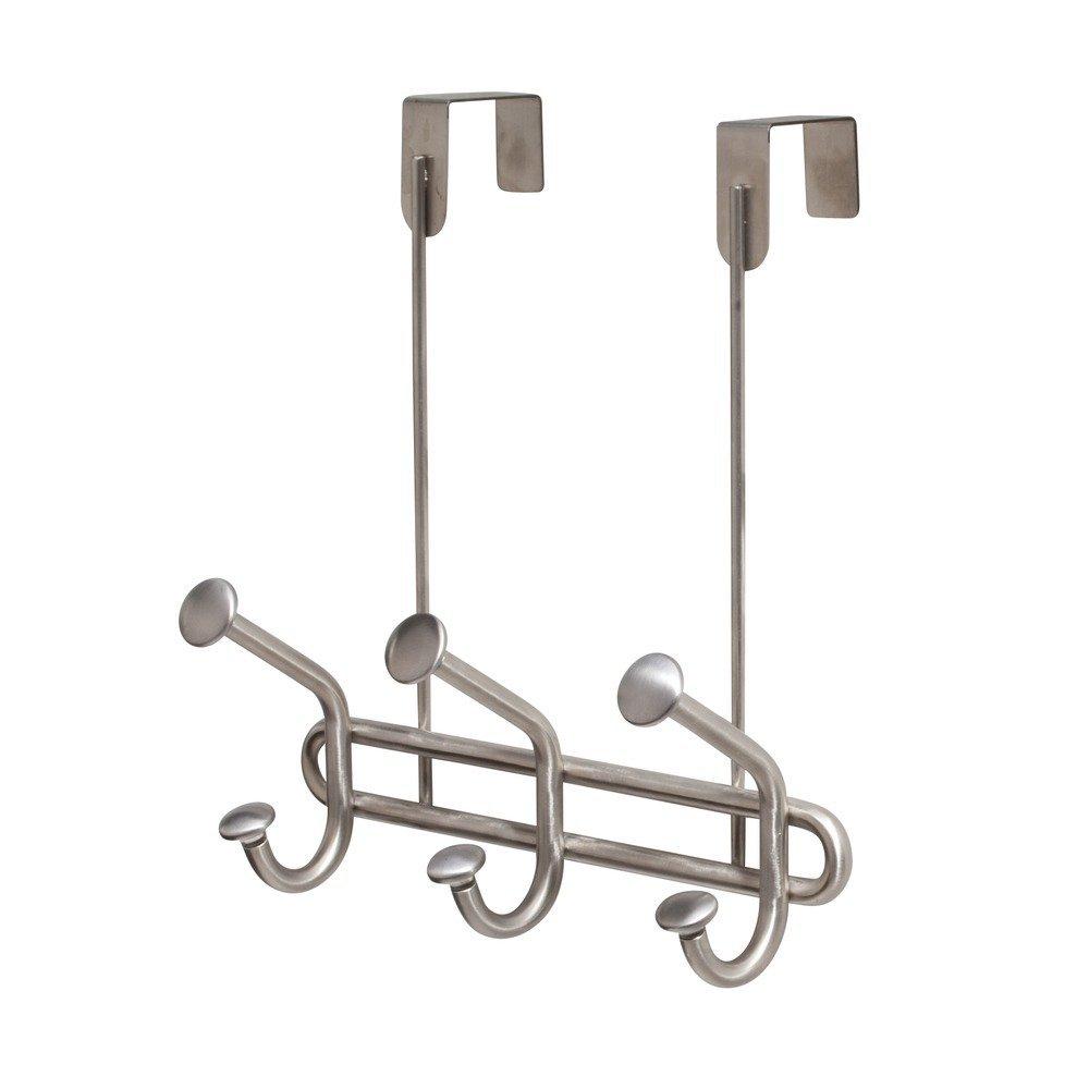 InterDesign Forma Ultra Over Door Storage Rack - Organizer Hooks for Coats, Hats, Robes, Clothes or Towels – 3 Dual Hooks, Brushed Stainless Steel