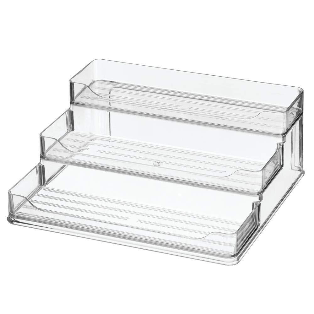 Plastic Spice and Food Kitchen Cabinet Pantry Shelf Organizer - 3 Tier Storage - Modern Compact Caddy Rack - Holds Spices/Herb Bottles, Jars - for Shelves, Cupboards, Refrigerator - Clear
