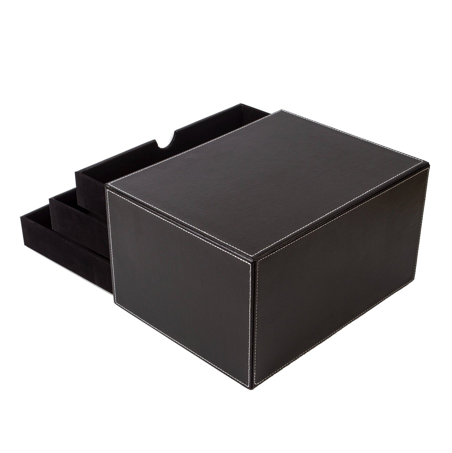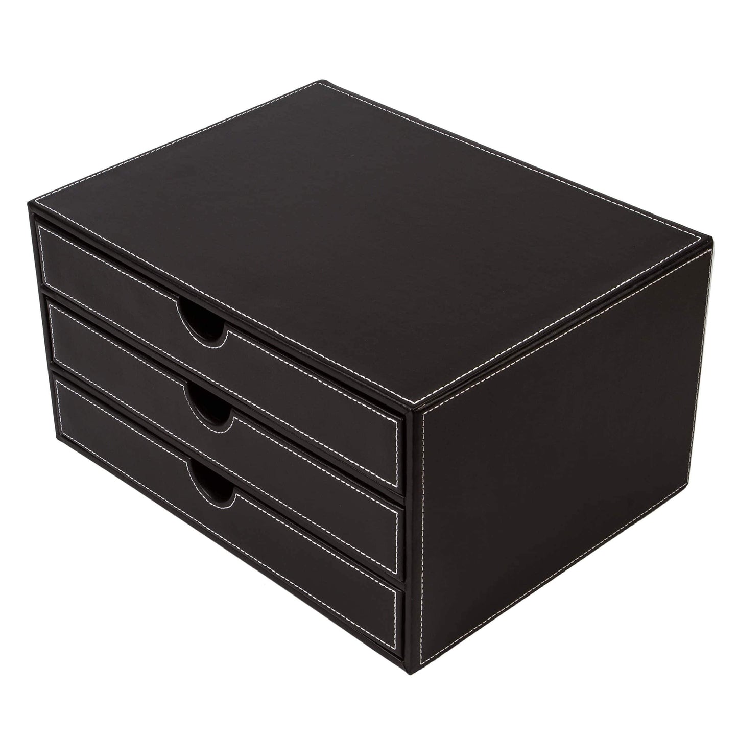 UBaymax Multi-functional 3 Drawer Leather Desk Organizer File Cabinet Office Supplies Desktop Storage Jewelry Organizer Box with Drawer (Black)