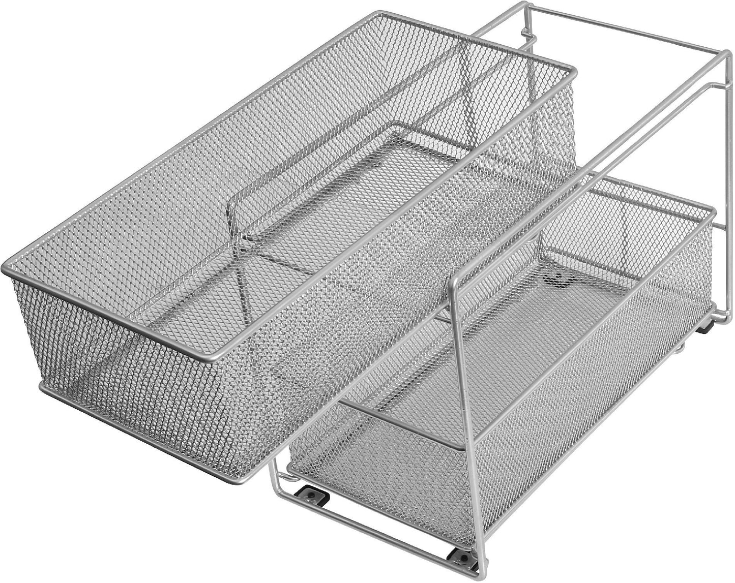 YBM Home Silver 2 Tier Mesh Sliding Spice and Sauces Basket Cabinet Organizer Drawer 2304