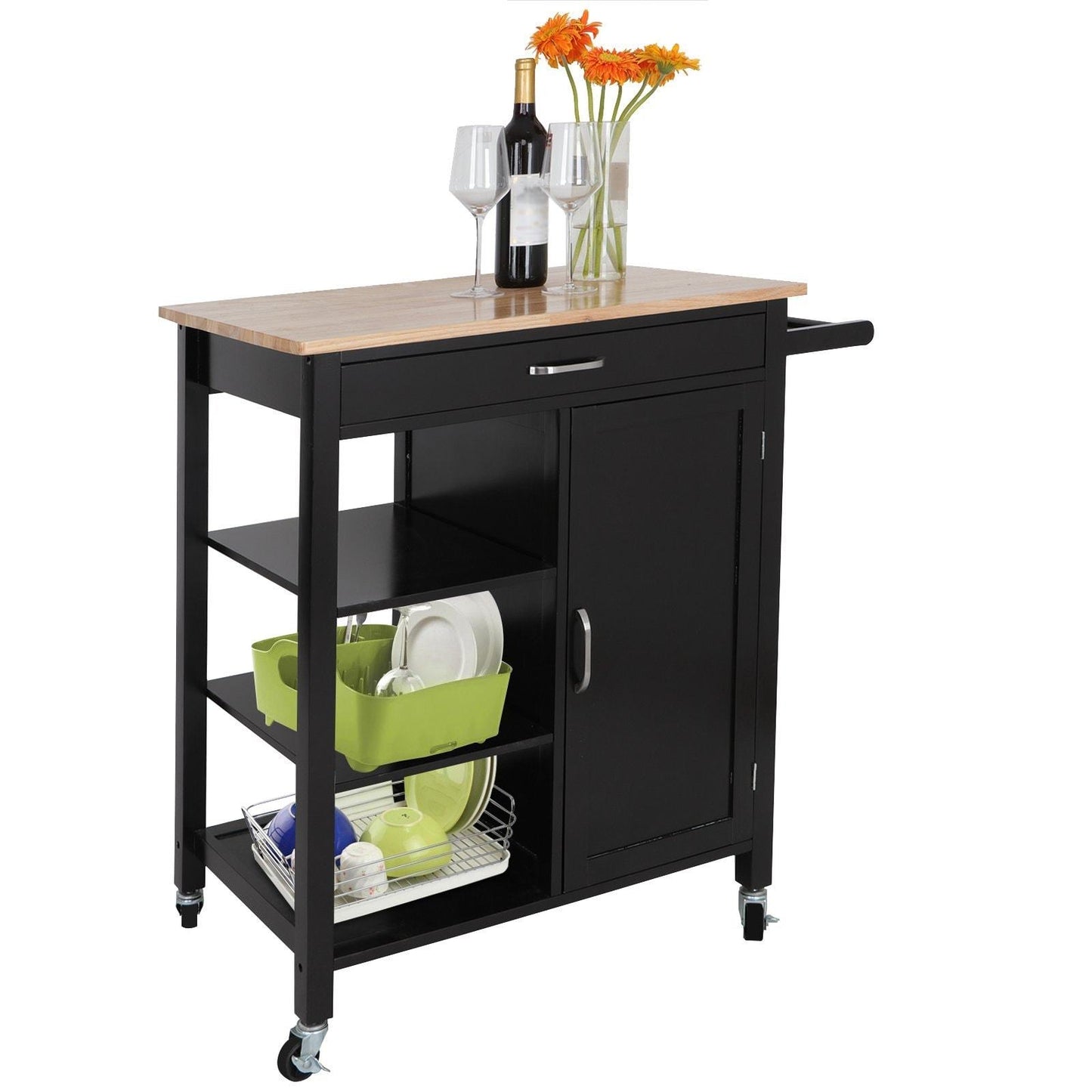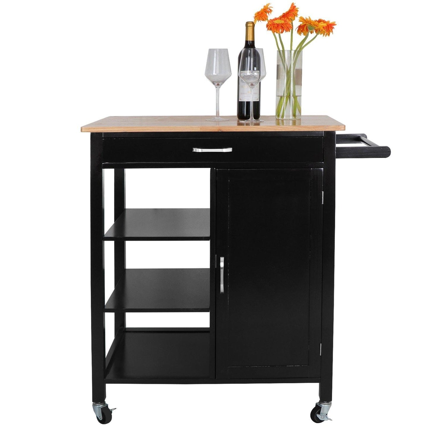 - 『Sturdy & Durable』This cart's structure and its drawer, shelves are made of sturdy pine wood material and high quality rubber wood butcher block countertop with elegant dark brown color exterior spray paint treatment which has water-proof function for easier cleaning and durable using